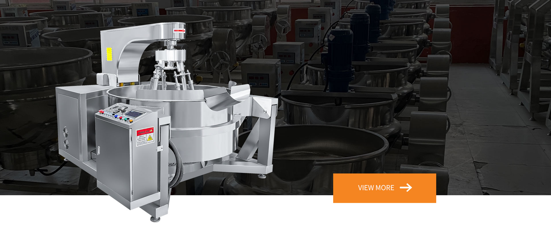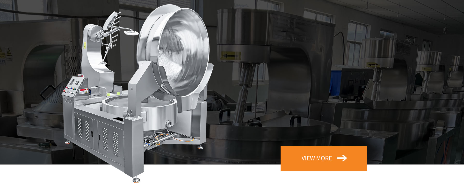 公司主要生產品種有多爪攪拌炒鍋、全自動行星攪拌炒鍋、夾層鍋、高壓蒸煮鍋、方形鹵煮鍋、全自動爆米花炒鍋、氣泡清洗線、巴氏殺菌漂燙線、風干流水線、醬料攪拌料車、火鍋底料炒料機、全自動醬料攪拌炒鍋、預制菜加工設備、全自動熬糖鍋等食品設備,支持定制加工。